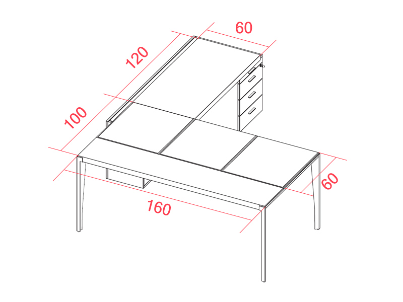 Le caisson de rangement est en métal laqué avec un dos travaillé avec des découpes ouvertes. Il possède 3 tiroirs à extraction totale avec butée, pour éviter la sortie accidentelle, système de fermeture soft et système anti-basculement. La serrure est avec clé pliable et fermeture simultanée. Les poignées sont en métal de finitions blanc ou gris ombre. Le caisson a des pieds réglables en hauteur. Les finitions disponibles pour la structure du caisson sont le blanc opaque et gris ombre.