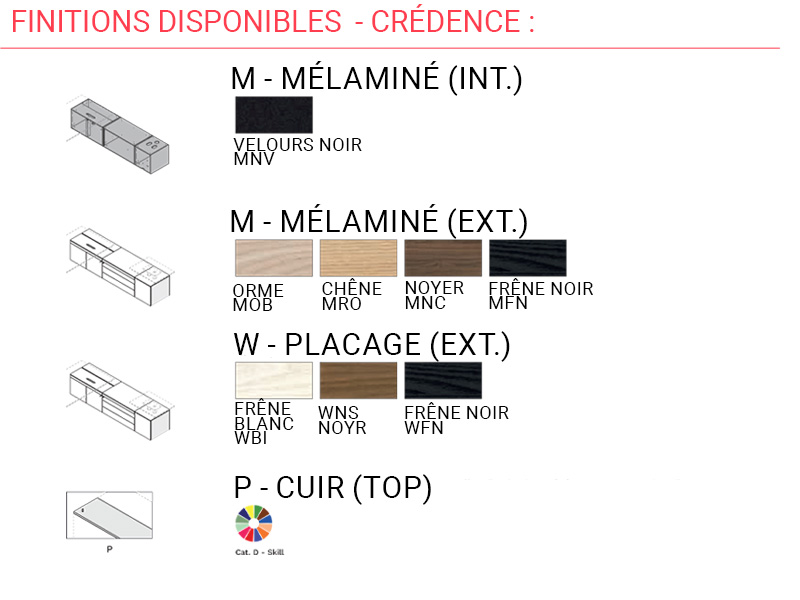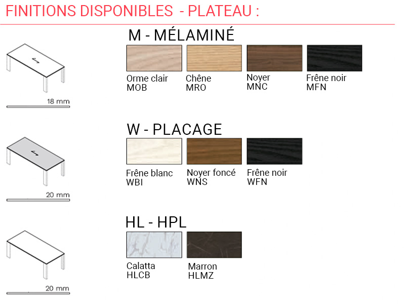 Le placage bois, utilisé pour le plateau comme pour la crédence et le top, est un choix judicieux alliant durabilité et nobless. Il s’agit d’une fine couche de bois véritable appliquée sur un support technique de haute qualité. Ce matériau conserve le charme du bois massif tout en réduisant l’impact environnemental et les déformations liées au temps. Les finitions disponibles sont protégées par des vernis acryliques transparents, conformes aux normes E1 et CARB pour une émission réduite de formaldéhyde, garantissant un environnement sain.