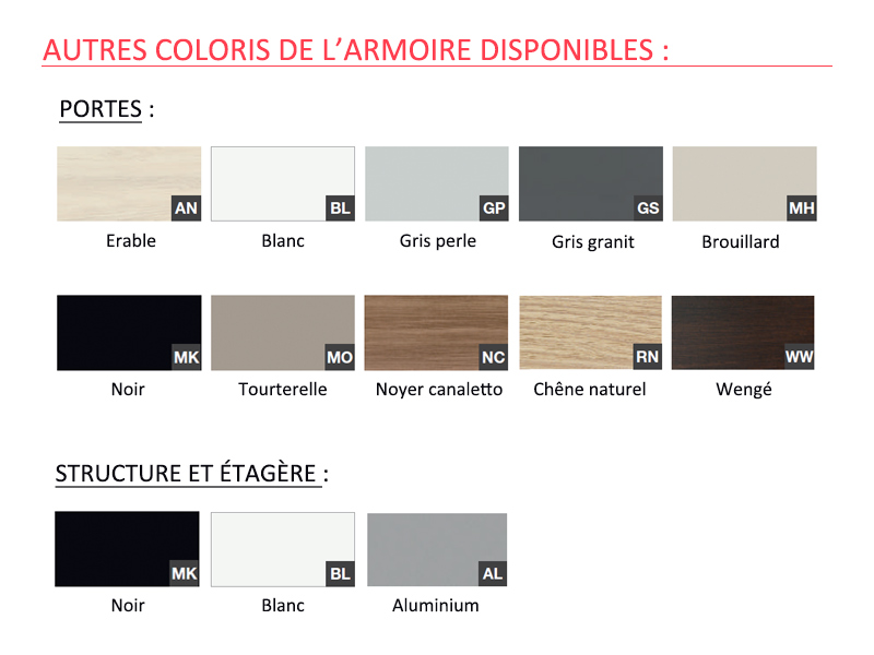 2 niveaux de rangement (1 étagère inclus). L'ensemble bureau + armoire permet d'optimiser l'espace et réduire l'encombrement. D'autres finitions sont disponibles sur demande (voir nuancier).