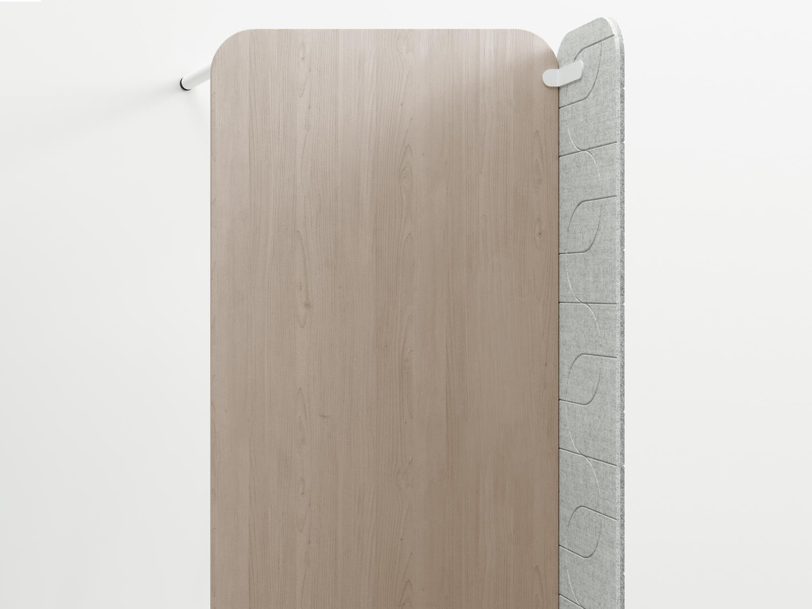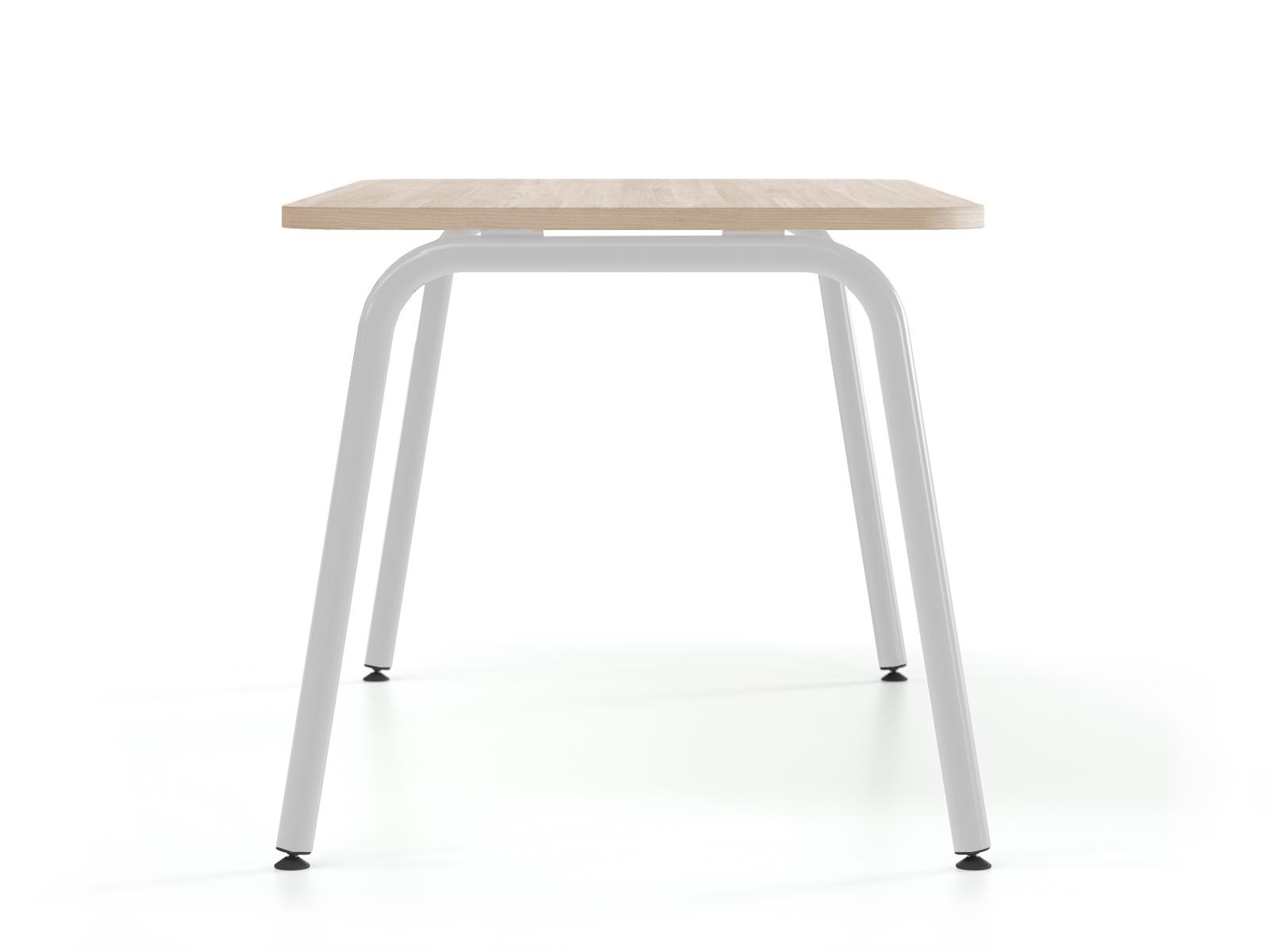 Il dispose d'un plan de travail en mélaminé de 25 mm d'épaisseur proposé dans une très réussie finition aspect bois chêne clair ou dans une finition blanc unie. Il est disponible en 2 dimensions : 120 x 70 ou 140 x 70 cm. Sa structure en tube d'acier est disponible en blanc (RAL 9016) ou gris anthracite (RAL 7016).