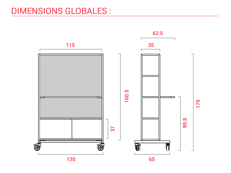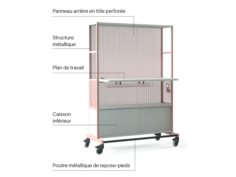 le support écran (VESA 100x100, 15kg max) à installer sur le fond en tôle