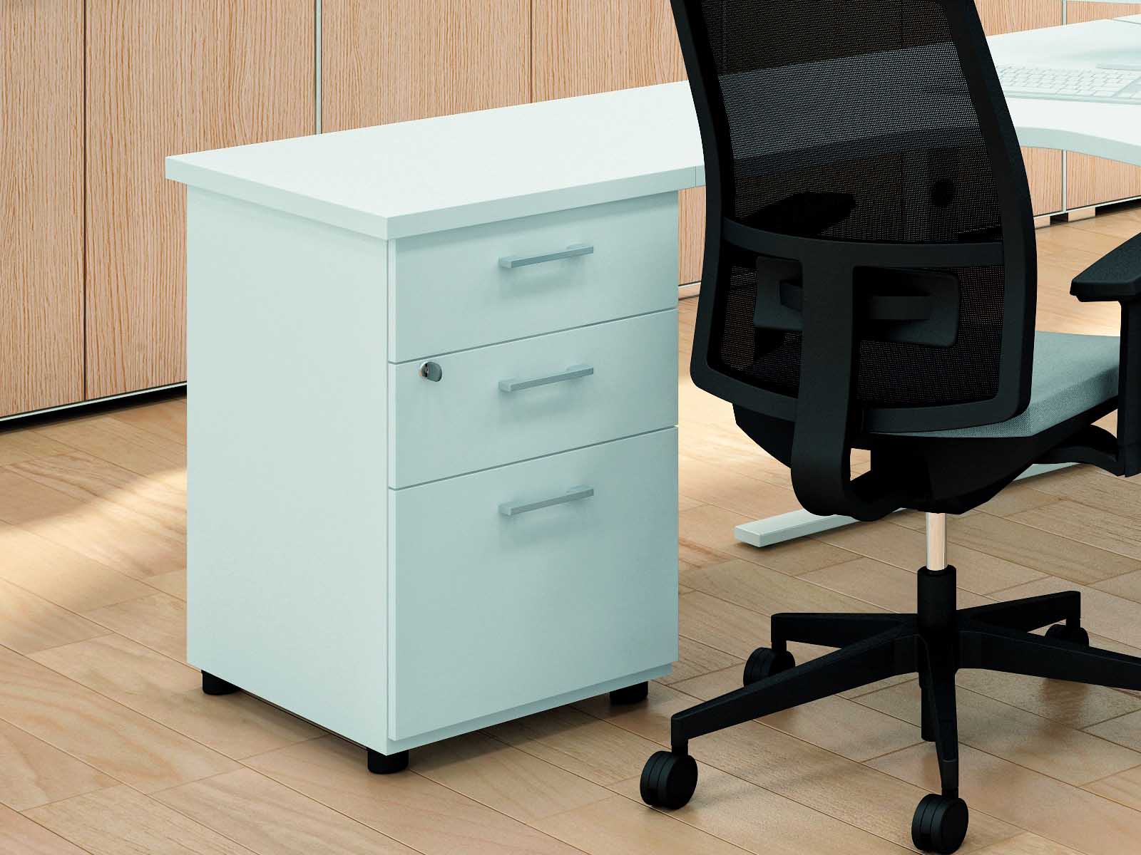 Le plateau de forme compacte est complété par un retour sur caisson avec 3 tiroirs. Le tout forme un ensemble complet et particulièrement confortable. Les plateaux sont en bois mélaminé d'épaisseur 25 mm et situés à 73 cm de haut. Le plateau compact est disponible en largeur 160 ou 180 cm pour une profondeur de 120 cm. Le retour mesure 45 cm de large pour 60 cm de profondeur. Les dimensions globales varient de 160 à 180 cm de large pour 165 cm de profondeur.