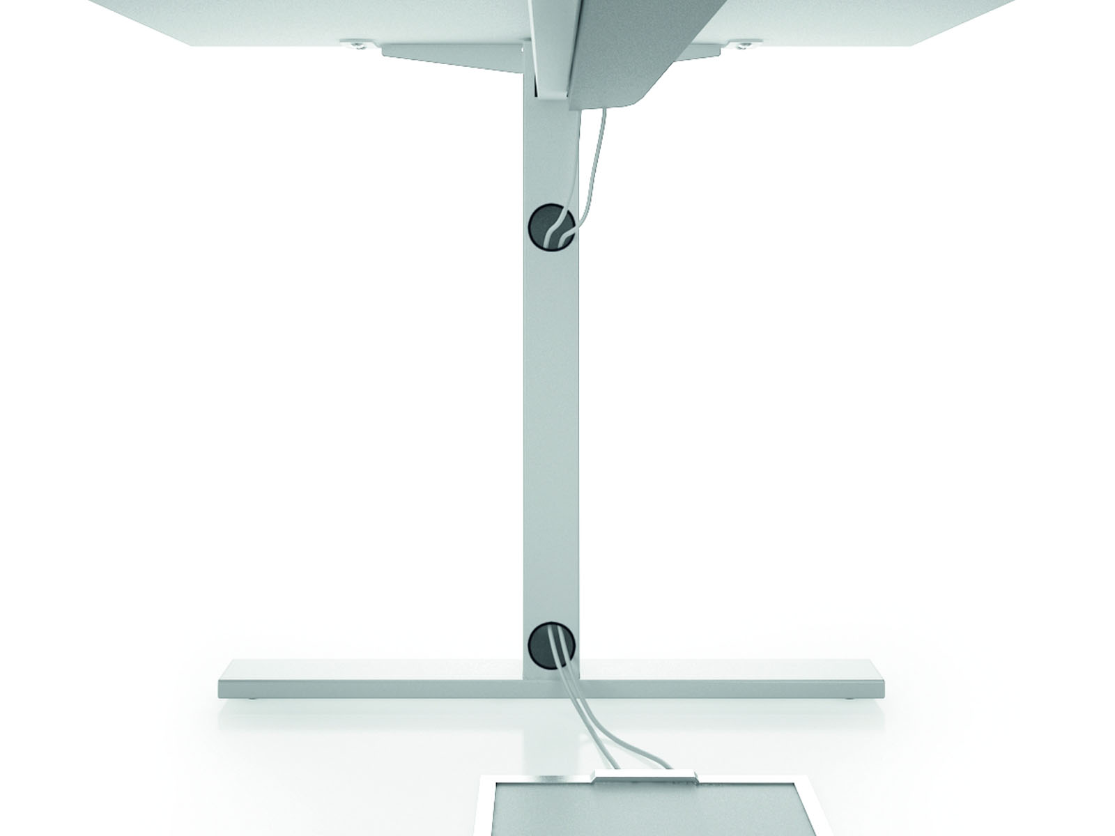 L'Alérion est un bureau individuel pour les professionnels qui se remarque à son piètement en forme T intégrant la descente des câbles. Ses lignes simples et intemporelles lui permettent de s'intégrer dans toutes les entreprises.