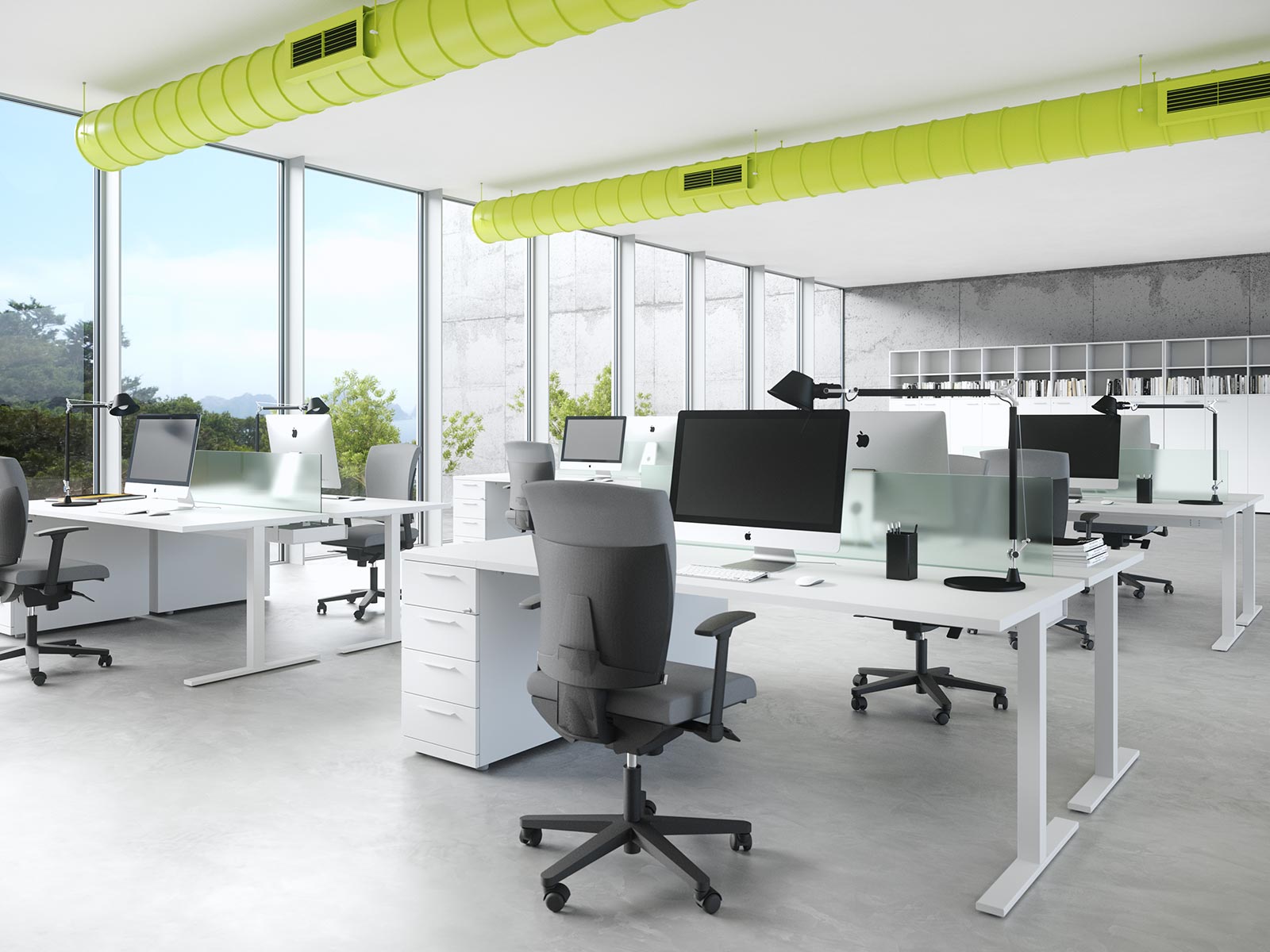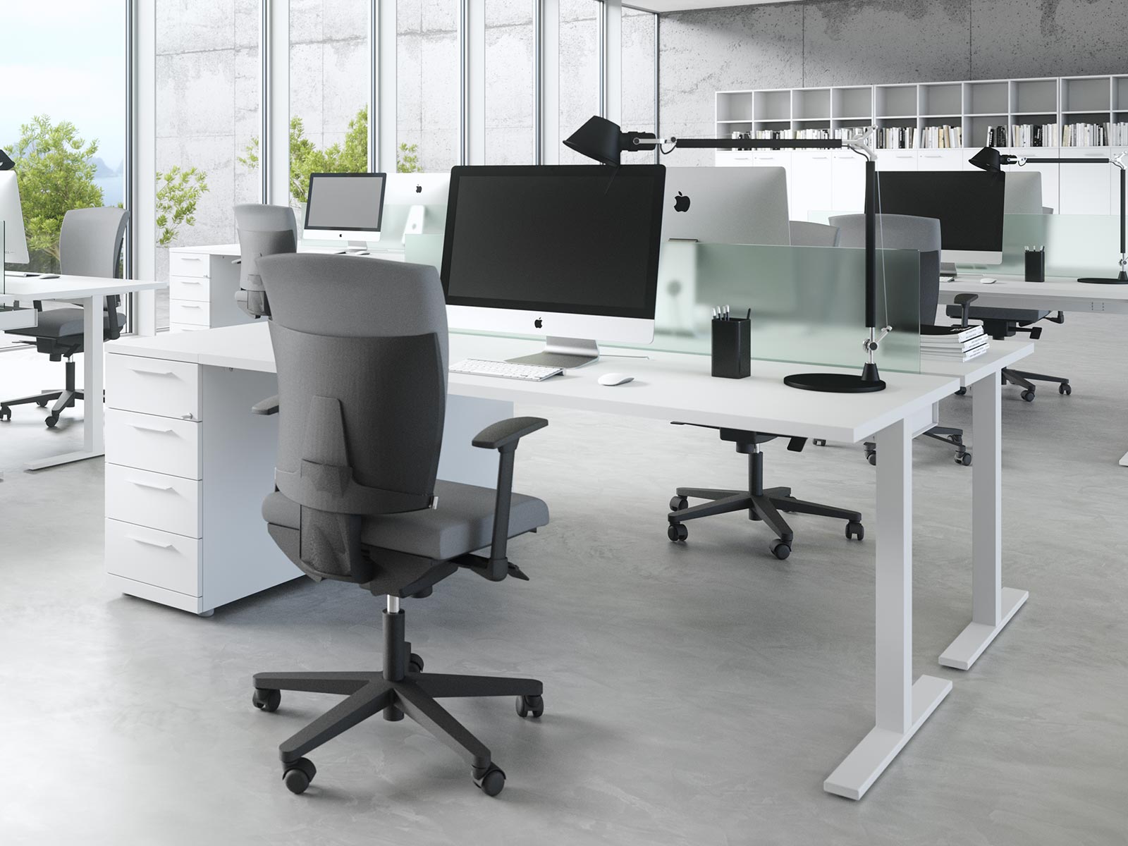 Si vous positionnez des bureaux Pop Tee sur caisson face à face, l'ajout d'un panneau séparatif sera recommandé pour délimiter les espaces, voir le configurateur.