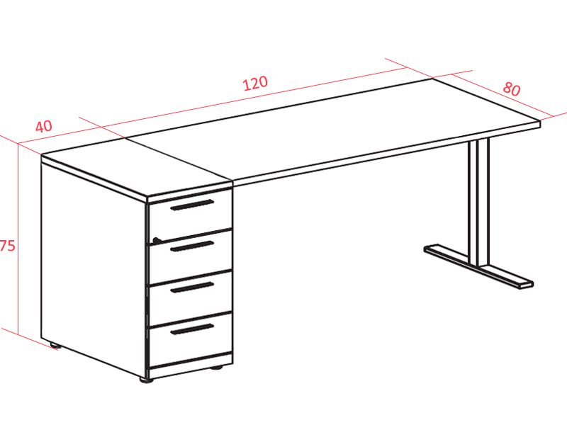 Le plateau du bureau mesure 80 cm de profondeur. Il est proposé en largeurs 120, 140, 160 et 180.