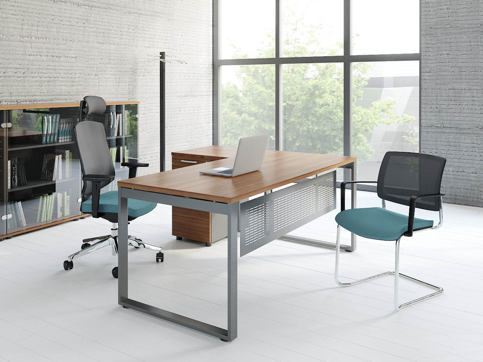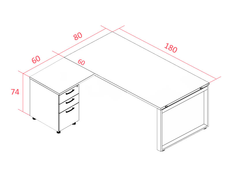 Dimensions du plateau180x80 cmDimensions du retour60x60 cm80x60 cm100x60 cm120x60 cmFinition du plateau et façade du caissonNoyerColoris du piètement et structure du caissonAluminium