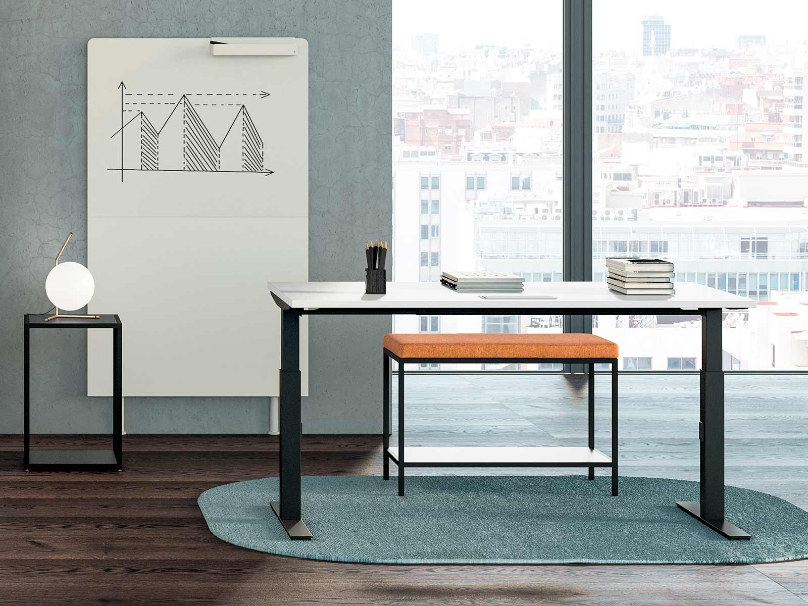 Winstor est le système le plus avancé pour les postes de travail à haute efficacité ergonomique. Sa structure réglable en hauteur permet à l’utilisateur de changer de position fréquemment, l’empêchant ainsi de rester assis pendant plusieurs heures consécutives. Le plan de travail pourra donc être réglé où vous le souhaité entre 65 et 130 cm de hauteur depuis le sol. Différents accessoires pourront compléter l'ergonomie de travail de ce bureau : le support UC, le support écran ou la goulotte passe-câbles.