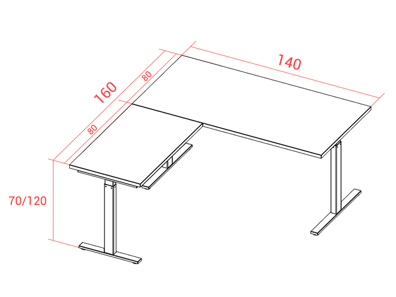 2 moteurs (1 dans chaque pied) pour faire évoluer la hauteur de la surface de travail de 62 à 127 cm ou de 70 à 120 cm selon le modèle choisi. Le modèle offrant la plus grande amplitude dispose d'une structure à 3 niveaux contre 2 niveaux pour le modèle avec le réglage plus restreint mais aussi plus économique.