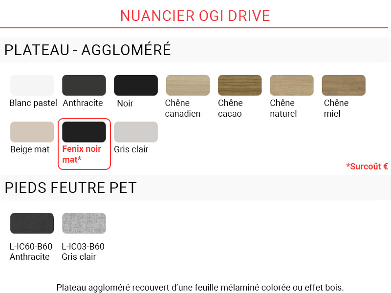 Bureau individuel réglable en hauteur Drive pieds en feutre - MDD