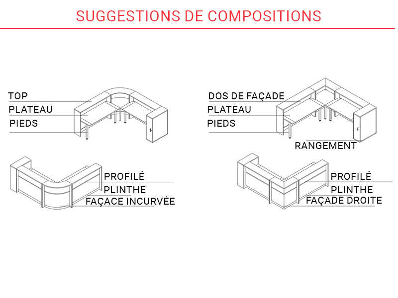 - Possibilité de combiner plusieurs couleurs : front, plateau, socle, profils, joues…
