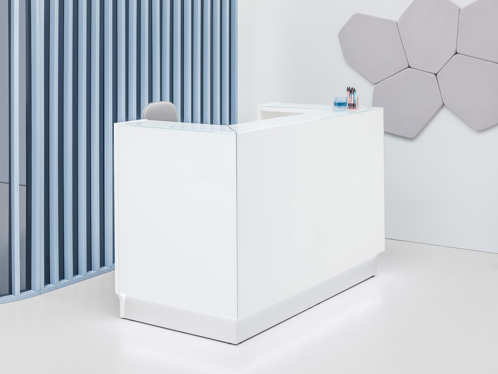 Linéa est une banque d'accueil particulièrement élégante, qui brillera dans votre espace de réception grâce à sa façade en verre et son éclairage à LED. Disponible en 2 largeurs, ce produit MDD peut accueillir 2 à 4 personnes dans un magasin, un cabinet de médecins, une entreprise, etc.
