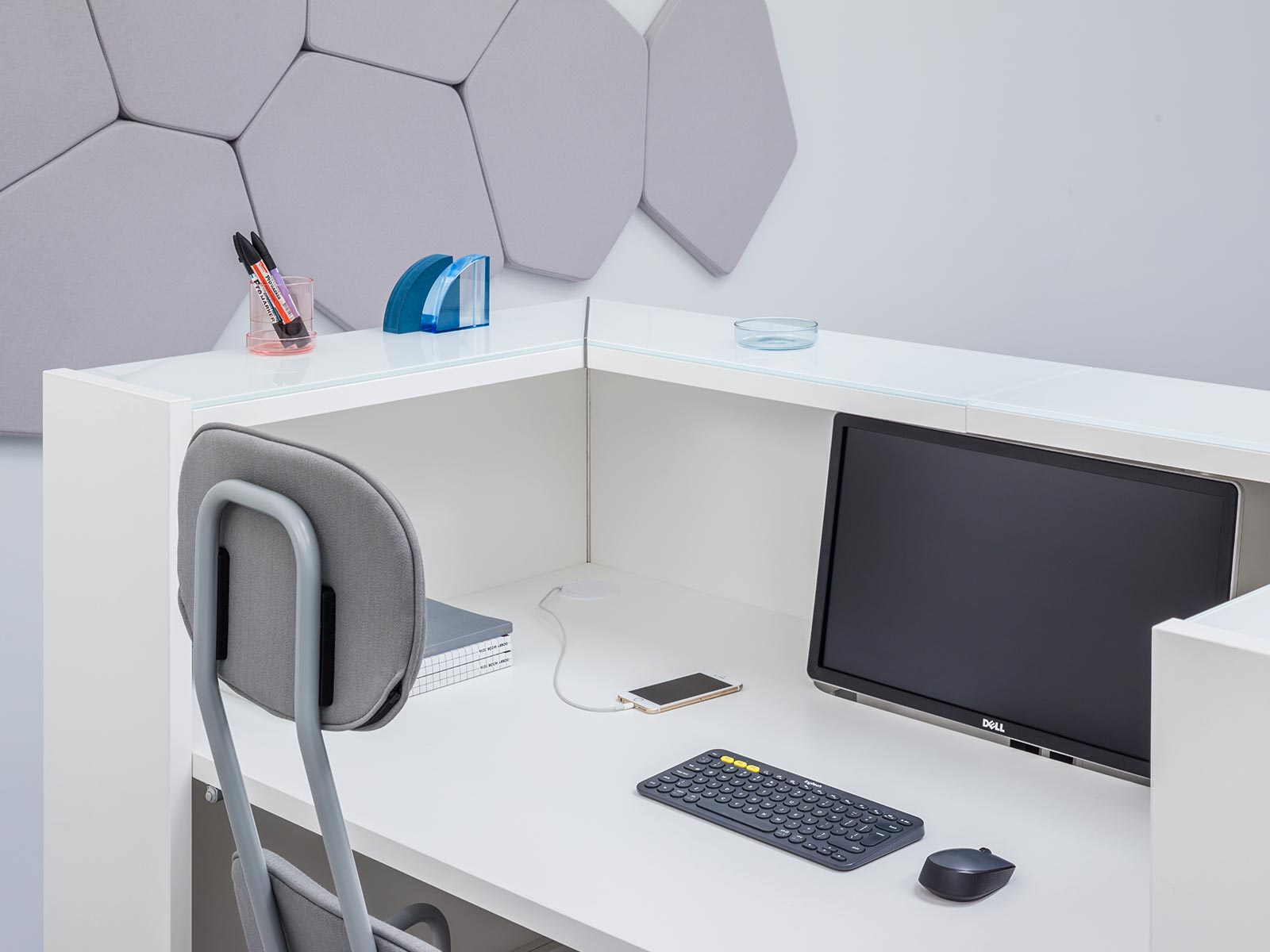 MDD présente dans son catalogue plusieurs options pour compléter la banque Linéa : tablette support écran encastrée, modules et caissons de rangement, armoire à rideaux, etc. N'hésitez pas à nous contacter pour d'autres renseignements et coloris.