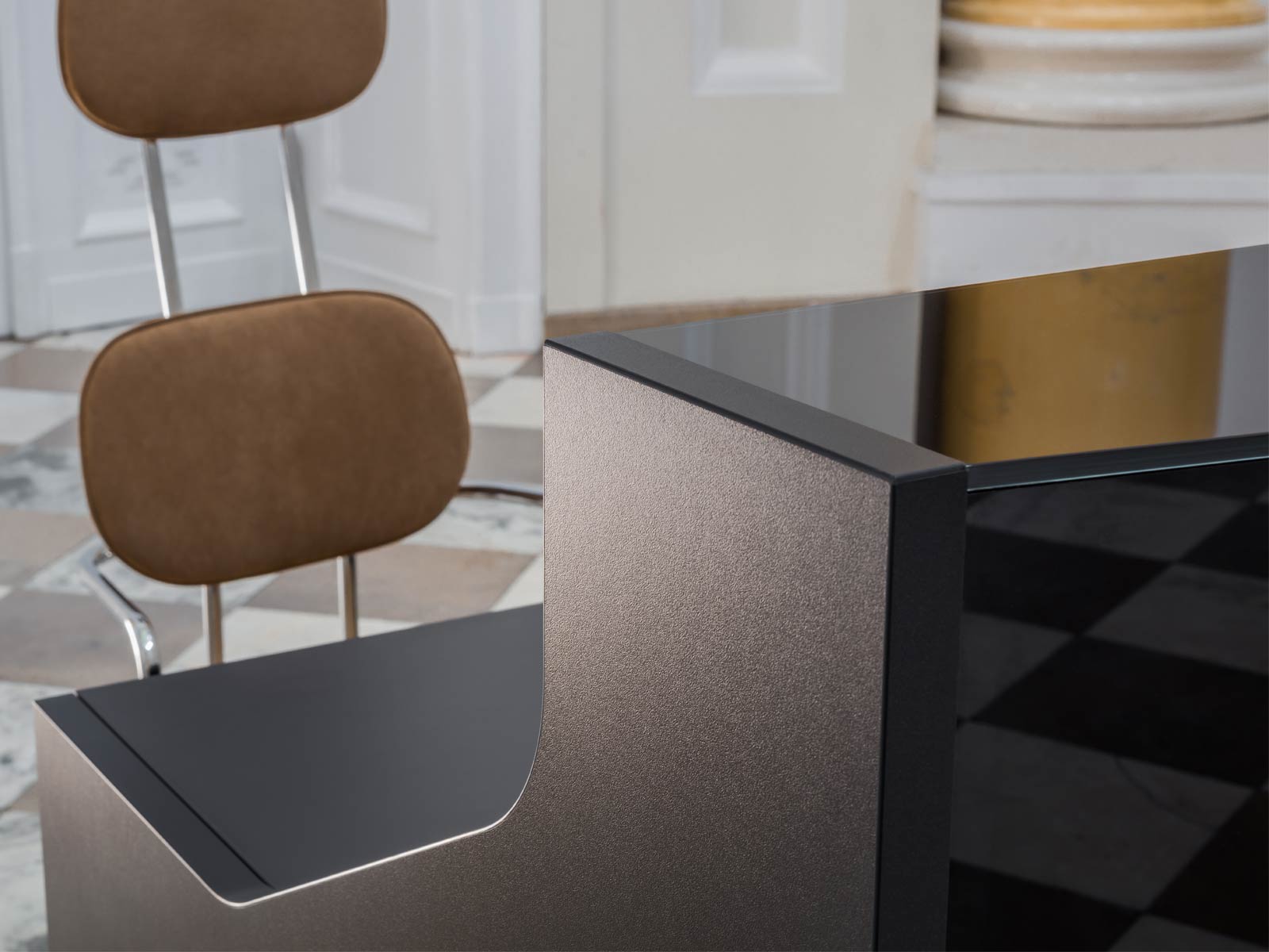 Inspirée de la forme des Alpes, cette magnifique banque d'accueil au design unique évoquera la nature dans votre espace de réception. Son design résolument moderne répondra aux exigences actuelles. Luxueuse et décontractée en même temps, la banque d’accueil modulaire ALPA est disponible dans plusieurs arrangements et finitions. Sa façade en verre brillant malgré sa couleur neutre - aluminium, noir ou blanc, illumine n'importe quelle pièce. Ses lignes minimalistes et épurées mises en valeur par les plinthes lumineuses sont les caractéristiques les plus marquantes de cette réception.
