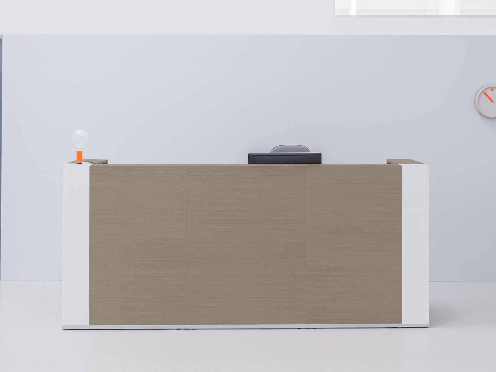 Classique et intemporelle, la banque d'accueil Tera répond aux attentes visant la simplicité et les formes universelles. L'esprit conservateur du mélaminé blanc ou bois est subtilement rompu par des éléments HPL brillants, conférant élégance et prestige à votre espace. Le comptoir est ici proposé en 2 versions, avec ou sans la réhausse en stratifié brillant incluant un éclairage LED pour une esthétique plus poussée et plus haut de gamme. Le comptoir est équipé d'obturateurs passe-câbles pour faciliter l'électrification et le passage des câbles.
