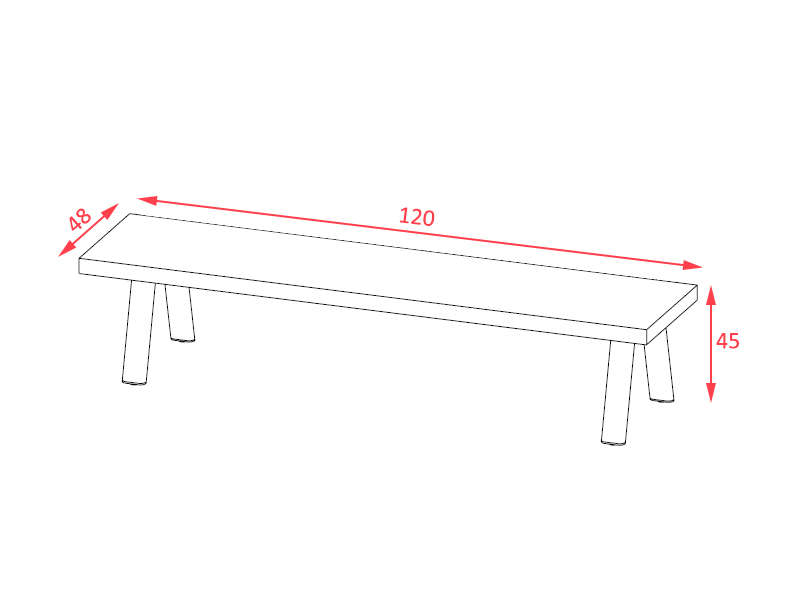 Les bancs mesurent 48 cm de profondeur et ont une assise à 45 cm du sol.
