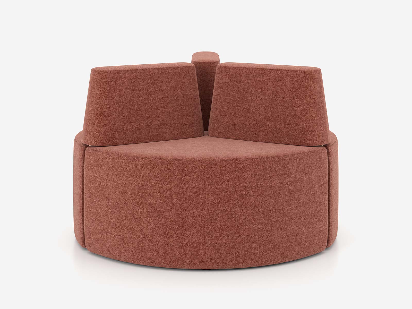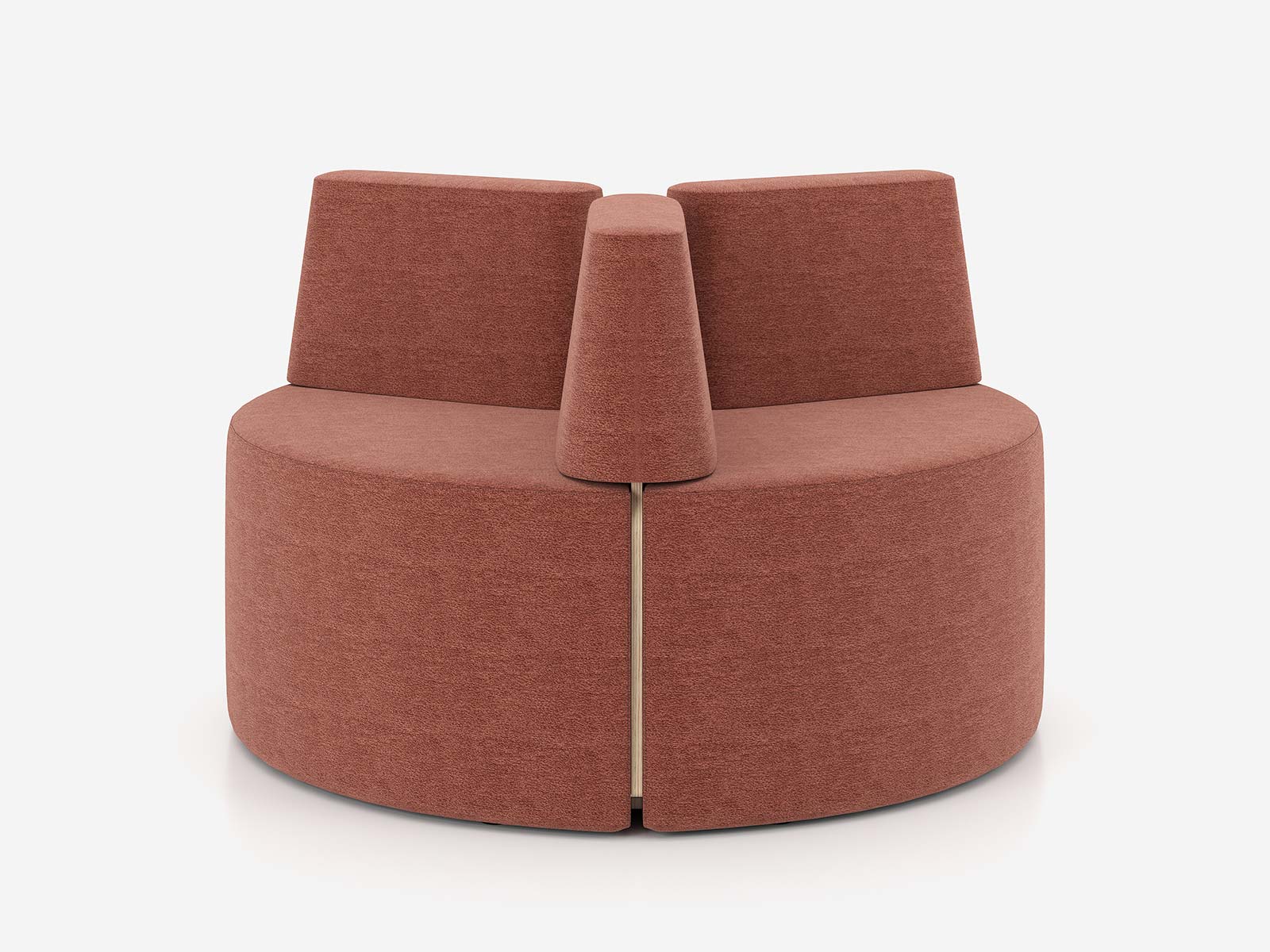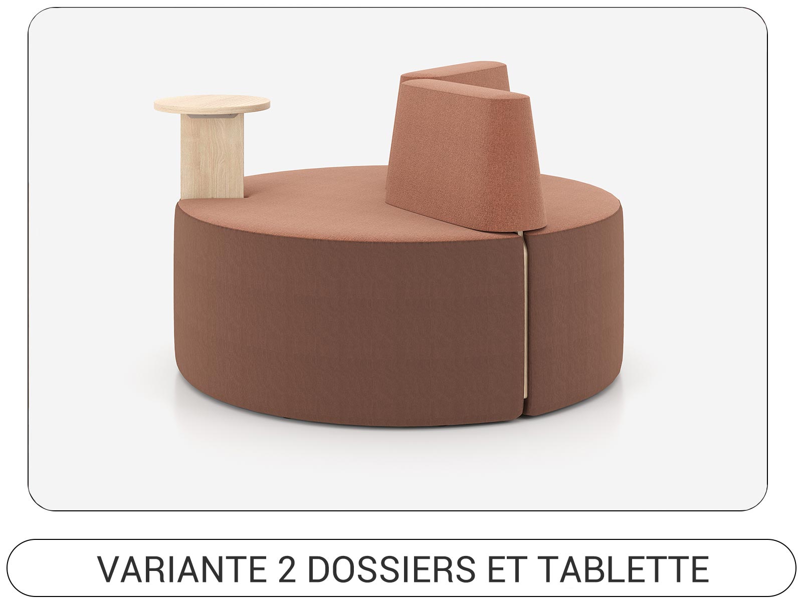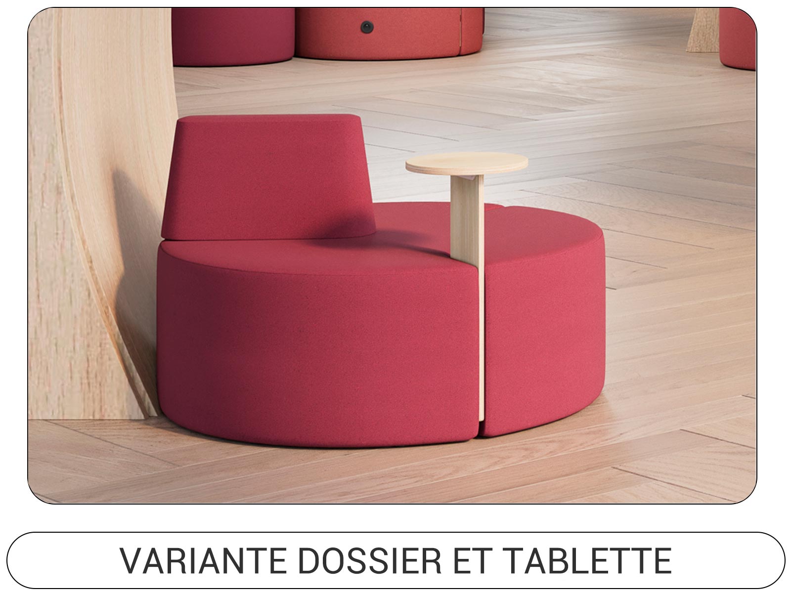 Le pouf propose ici une forme ronde de diamètre 115 cm intégrant 3 dossiers qui peuvent être facilement retirés si nécessaire sans outils. La hauteur d’assise est de 45 cm, idéale pour un usage quotidien en environnement professionnel.