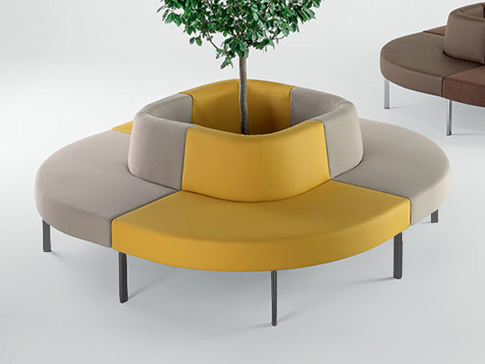 La banquette circulaire modulable Vela apporte une touche de sophistication et de fonctionnalité à vos espaces d'accueil ou de détente. Elle vous permettra d'accueillir jusqu'à 8 personnes sur un encombrement réduit et pourra être personnalisée selon vos préférences.