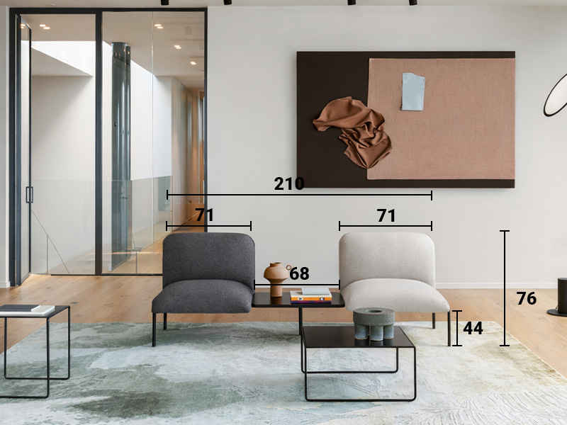 finition passepoilée ton sur ton. Les assises de cette banquette professionnelle combinent des tissus variés et des pieds en métal, permettant ainsi de créer facilement des espaces uniques et expressifs. Ce système modulaire est idéal pour l’aménagement de halls d’accueil ou de zone de coworking grâce aux différents éléments :