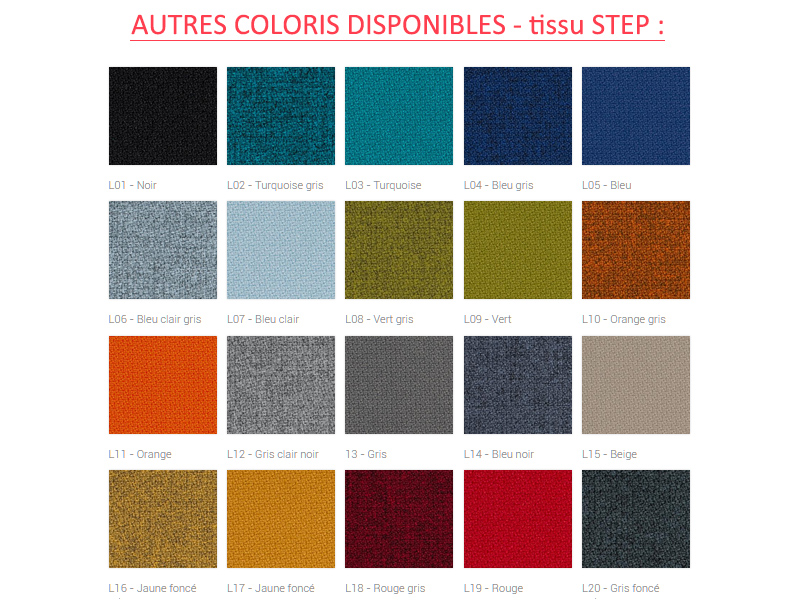 Présenté ici dans le nuancier Step Melange bicolore, le canapé Alma permet de créer une ambiance personnalisée et chaleureuse. Pour préserver l’harmonie du rendu, les deux coloris sélectionnés doivent provenir de la même collection de tissu. Cette possibilité de finition bicolore renforce le caractère décoratif du modèle tout en lui permettant de s’intégrer aussi bien dans des univers contemporains que plus chaleureux.