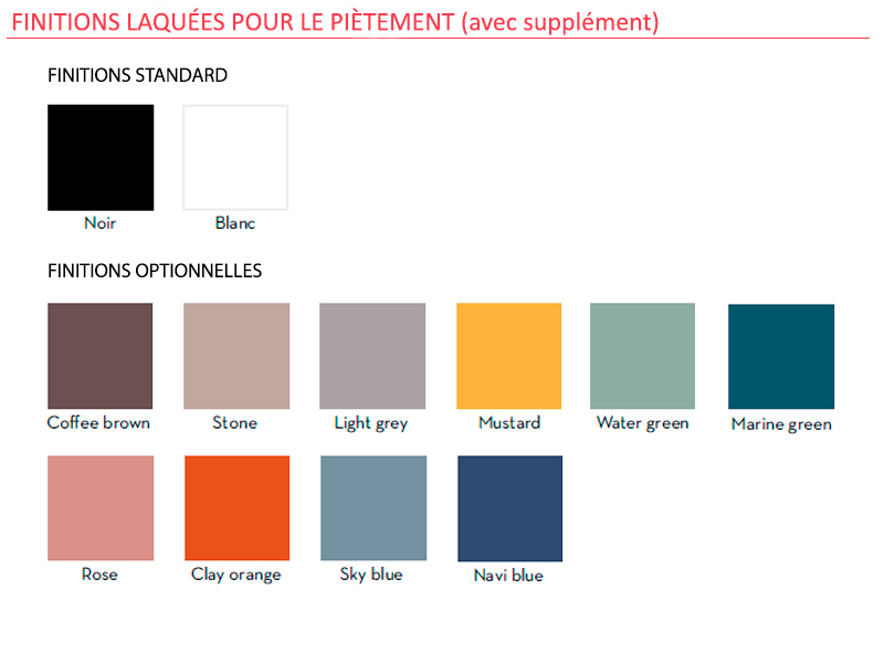 La coque est fabriquée en acier pour assurer sa robustesse et recouverte de mousse de polyuréthane haute densité et de résilience CMHR. Le piètement à 4 branches est en bois de chêne. Il est peint au choix en couleur naturelle, noyer ou wengé. Chaque branche possède un patin réglable pour une stabilité optimale.