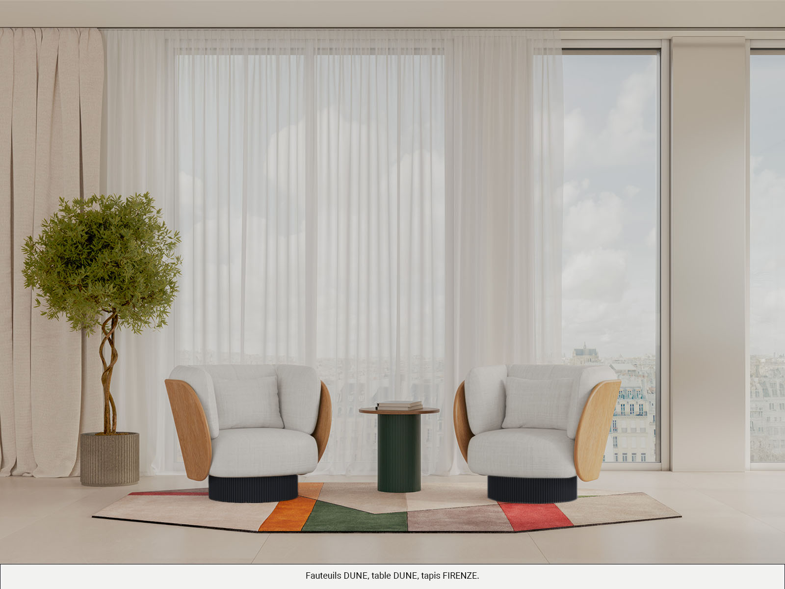 Le fauteuil Dune tire son nom des dunes façonnées par le vent. Ses lignes douces et organiques rappellent les ondulations du sable, offrant une esthétique intemporelle et une assise enveloppante propice à la détente. Son format compact permet une intégration fluide dans différents types d’espaces.