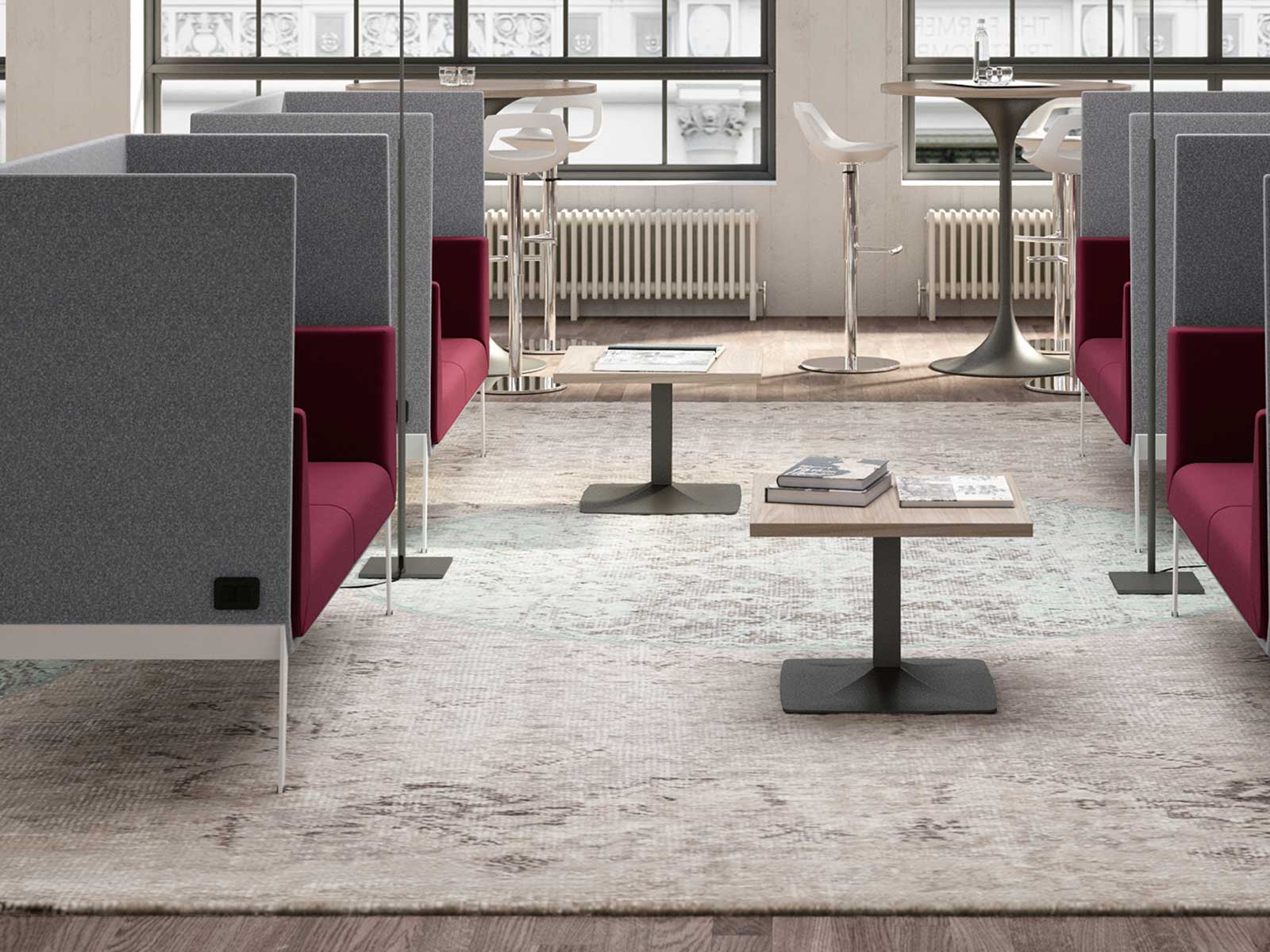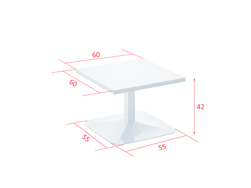 Caro est une table basse avec pied et plateau carrés et une base pyramidale. Elle conviendra aussi bien aux zones de détente, d'attente, à un bureau, qu'à la maison.