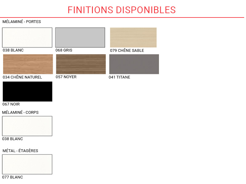 La gamme comprend des armoires hauteurs 76, 115 et 192 cm.