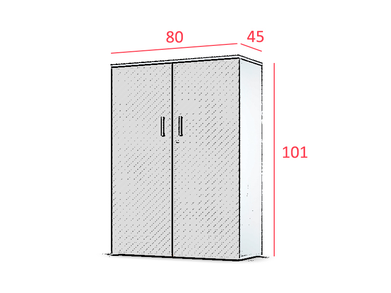 L'armoire mesure 80 ou 100 cm de largeur, 45 cm de profondeur et au choix 101, 133 et 166 cm de hauteur. Elle est équipée de vérins réglables à l’intérieur.