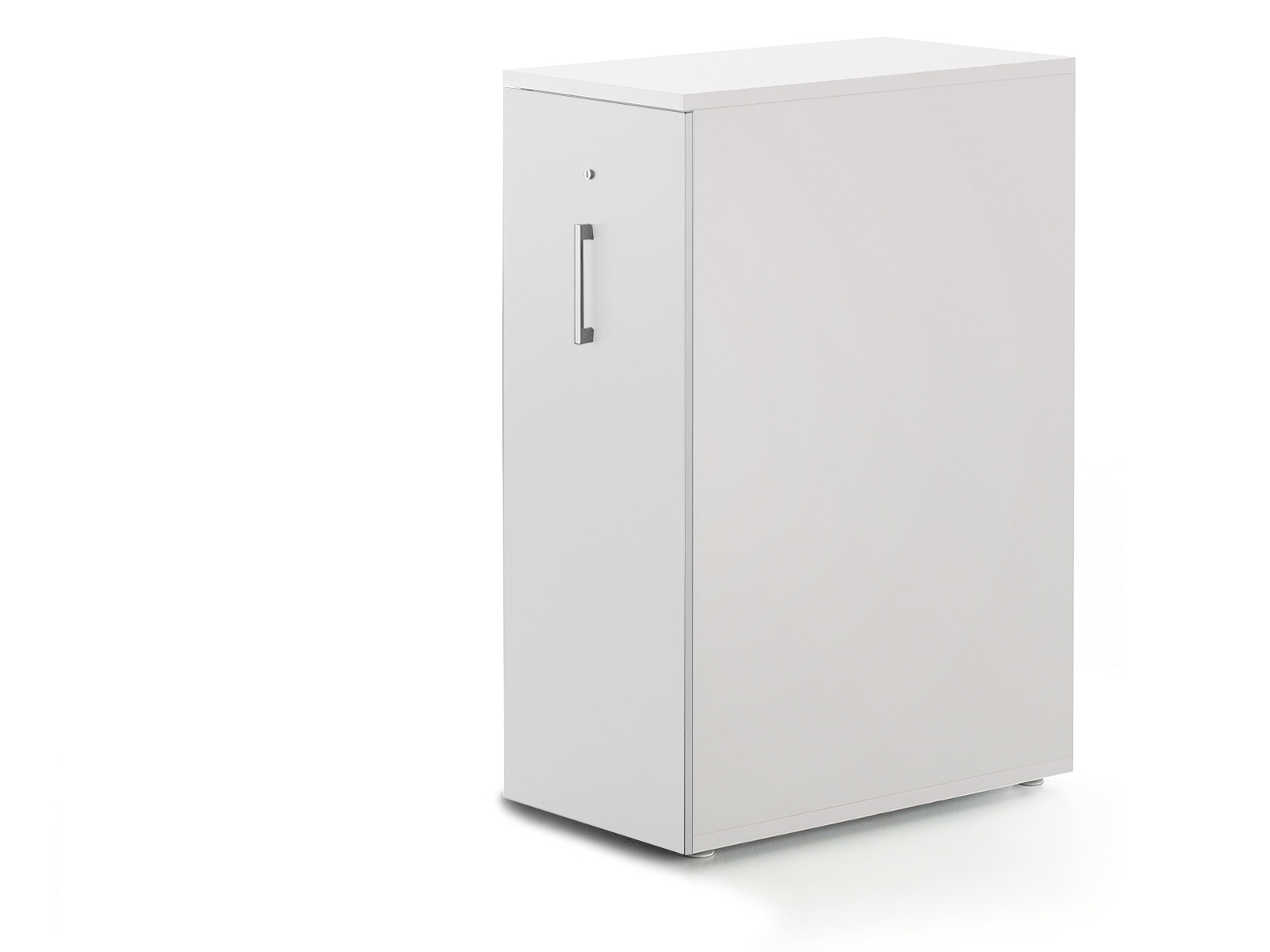 L'amoire est en mélaminé d'épaisseur 25 mm. Les façades sont d'épaisseur 19 mm. Elles sont équipées d'une serrure avec fermeture à clé pliante, munie d’une serrure interchangeable à passe (sur demande), et d'une poignée verticale en aluminium.