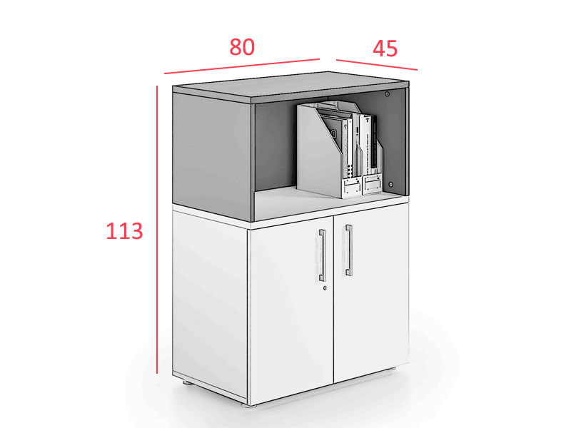 Cet ensemble de rangement du fabricant français Columbia propose une armoire basse à portes battantes complétée d'une réhausse en stratifié. Vous bénéficierez à la fois d'un espace de rangement fermé avec serrure ainsi que d'un espace ouvert pour les documents à garder à portée de main.