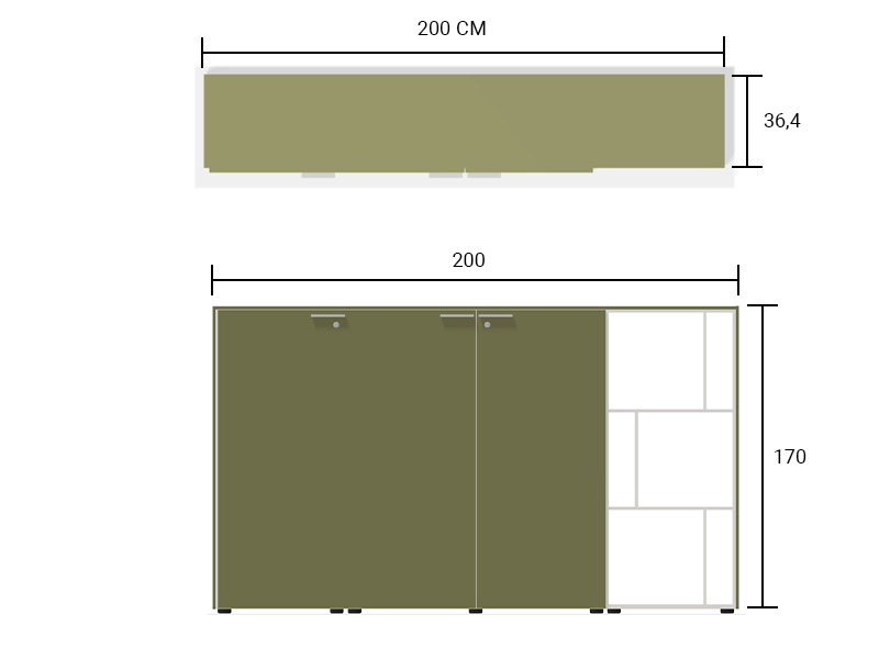 L'armoire propose des compartiments ouverts, parfaits pour la décoration ou les livres, ainsi que des compartiments fermés sécurisés par des portes battantes avec serrure, idéaux pour le stockage de documents. La bibliothèque intégrée est mise en valeur par des séparateurs verticaux fixes, conférant une originalité à l'ensemble. Les portes sont en bois laqué. La structure interne en mélaminé pour les armoires sont proposés uniquement en blanc ou noir. Les étagères intérieures offrent une profondeur utile de 31 cm, ou de 42 cm pour la version d'une profondeur totale de 46 cm. La hauteur  des niches standardisées sont d’environ 36-37 cm entre chaque niveau. Les portes s'ouvrent à 105° et sont équipées d'un cache-poussière pour faciliter l'entretien.