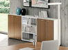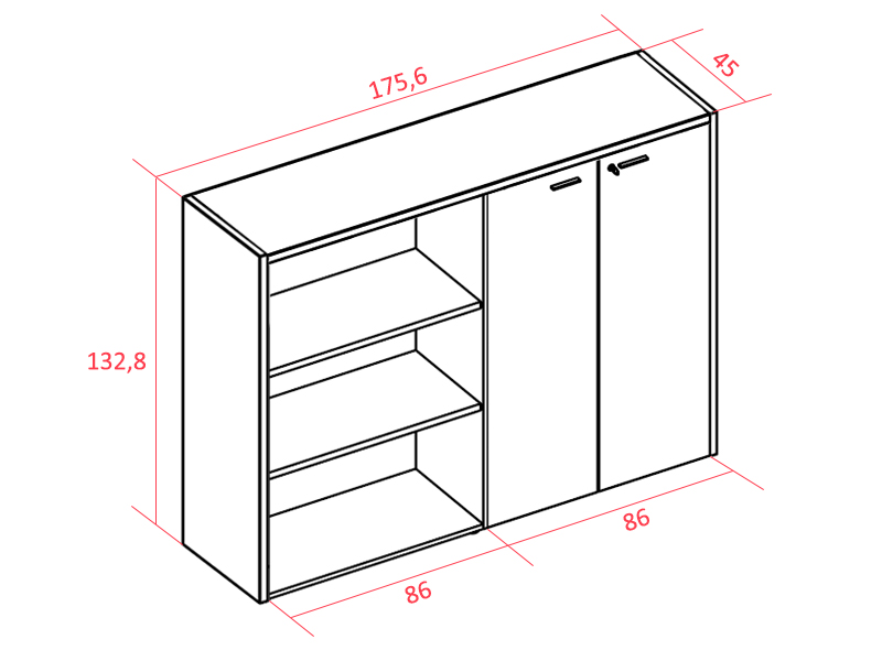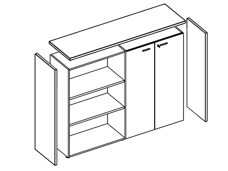 Les armoires sont en mélaminé d'épaisseur 18 mm avec traitement mat, anti-rayures et anti-reflet. Elles possèdent chacune 2 étagères en mélaminé d'épaisseur 25 mm. L'armoire fermée est équipée d'une serrure avec 1 jeu de 2 clés pliables. En option, il est possible d'ajouter le système de fermeture soft pour une fermeture tout en douceur des portes.