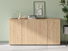 Les armoires sont en mélaminé d'épaisseur 18 mm avec traitement mat, anti-rayures et anti-reflet. Elles possèdent chacune 1 étagère en mélaminé d'épaisseur 25 mm. L'armoire est équipée d'une serrure avec 1 jeu de 2 clés pliables. En option, il est possible d'ajouter le système de fermeture soft pour une fermeture tout en douceur des portes.