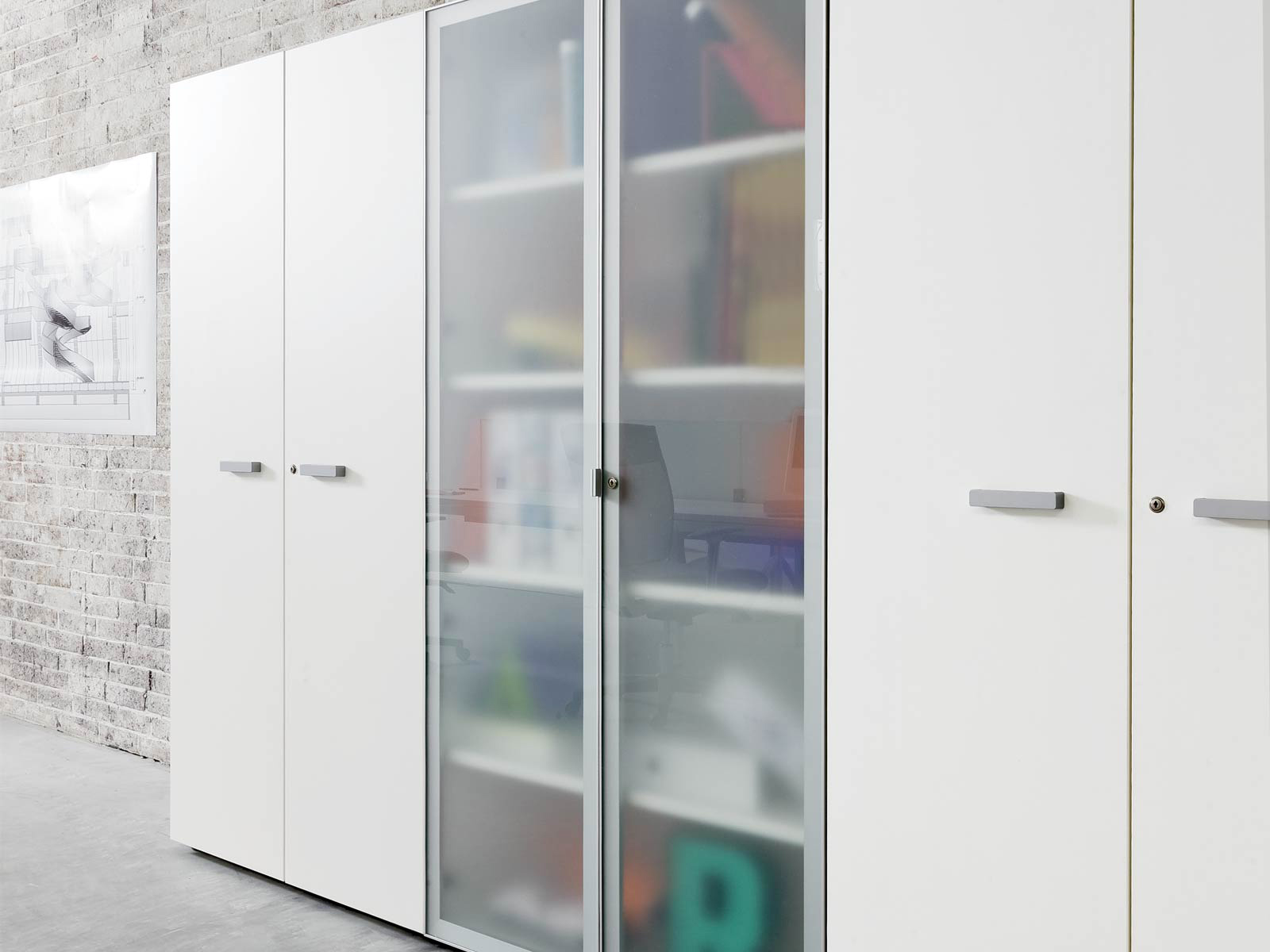 L'armoire haute Frezza est idéale pour disposer un grand espace de rangement tout en étant compatible avec les bureaux opératifs de la même marque, tel que Link.