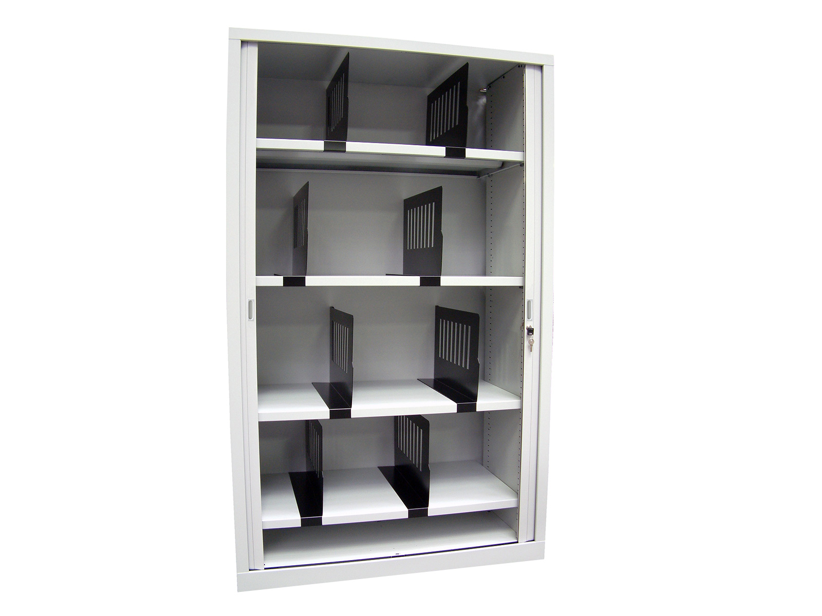 L'armoire est monobloc, ce qui lui confère une rigidité optimale et maintien sa longévité. Elle possède un socle à fond plat pour une sortie aisée des classeurs. Elle est livrée avec 4 étagères pour le modèle H192 cm et 3 étagères pour le modèle H160 cm et possède une serrure à came anti-crochetage avec 2 clefs numérotées pliables avec capuchon.