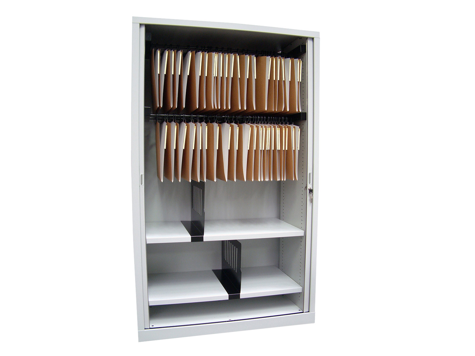 Les tablettes étant profondes, elles ne sont pas compatibles avec les dossiers suspendus. Pour cela, il faut commander un système d'accrochage spécifique, sur demande.