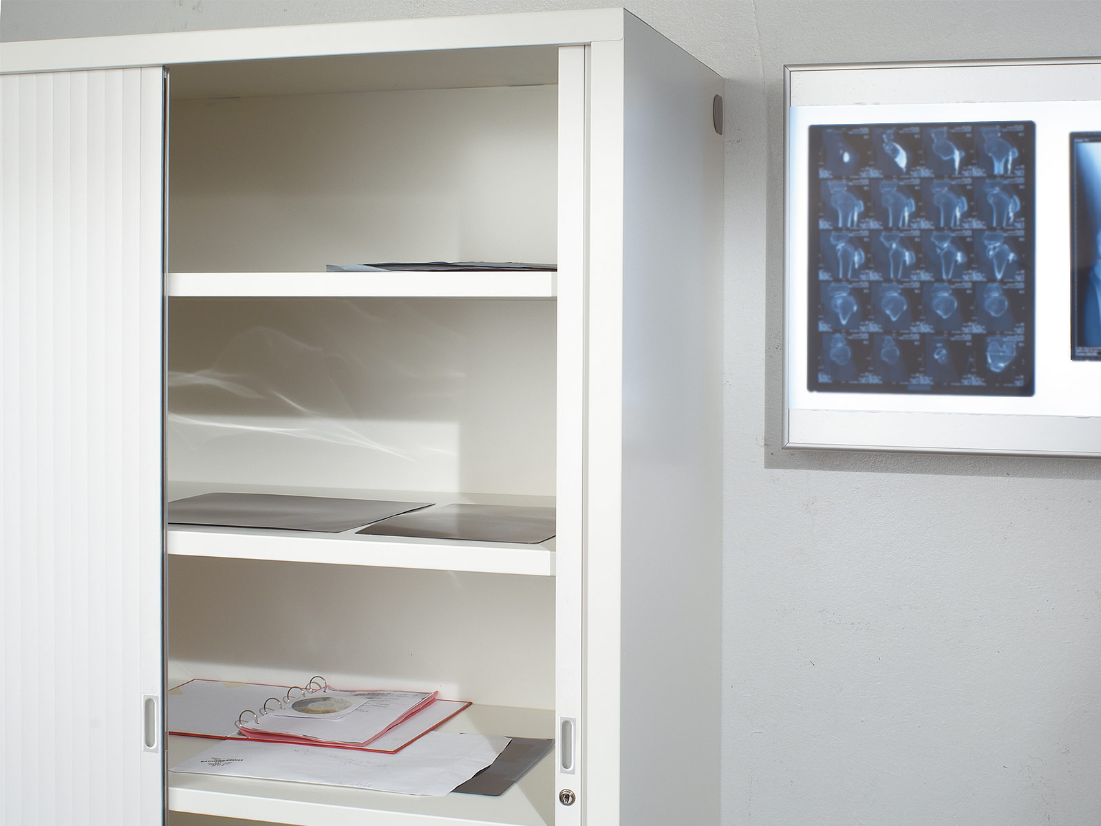 Cette armoire Généric à rideaux Vinco a une grande profondeur utile de 54,2 cm, ce qui lui permet de recevoir des documents de grands formats tels que les radios, les plans d'architectes ou les dossiers tubulaires. Sa fonctionnalité, son gain de place et sa sécurité (