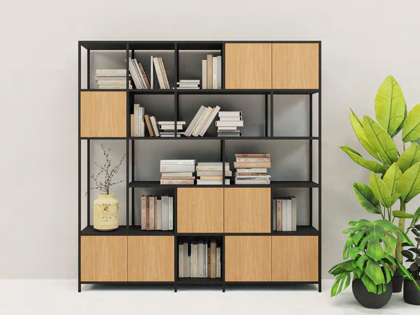 L202 x P42 x H209 cm en font une solution de rangement généreuse, idéale pour aménager un bureau de direction, une salle de réunion ou un espace d’accueil avec style.