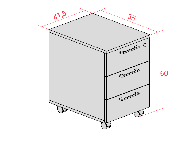 Le caisson est en mélaminé d'épaisseur 18 mm. Il est équipé de la fermeture centralisée avec jeu de clés pliables et numérotées, de poignées en zamak de finitions aluminium et de roulettes avec freins.