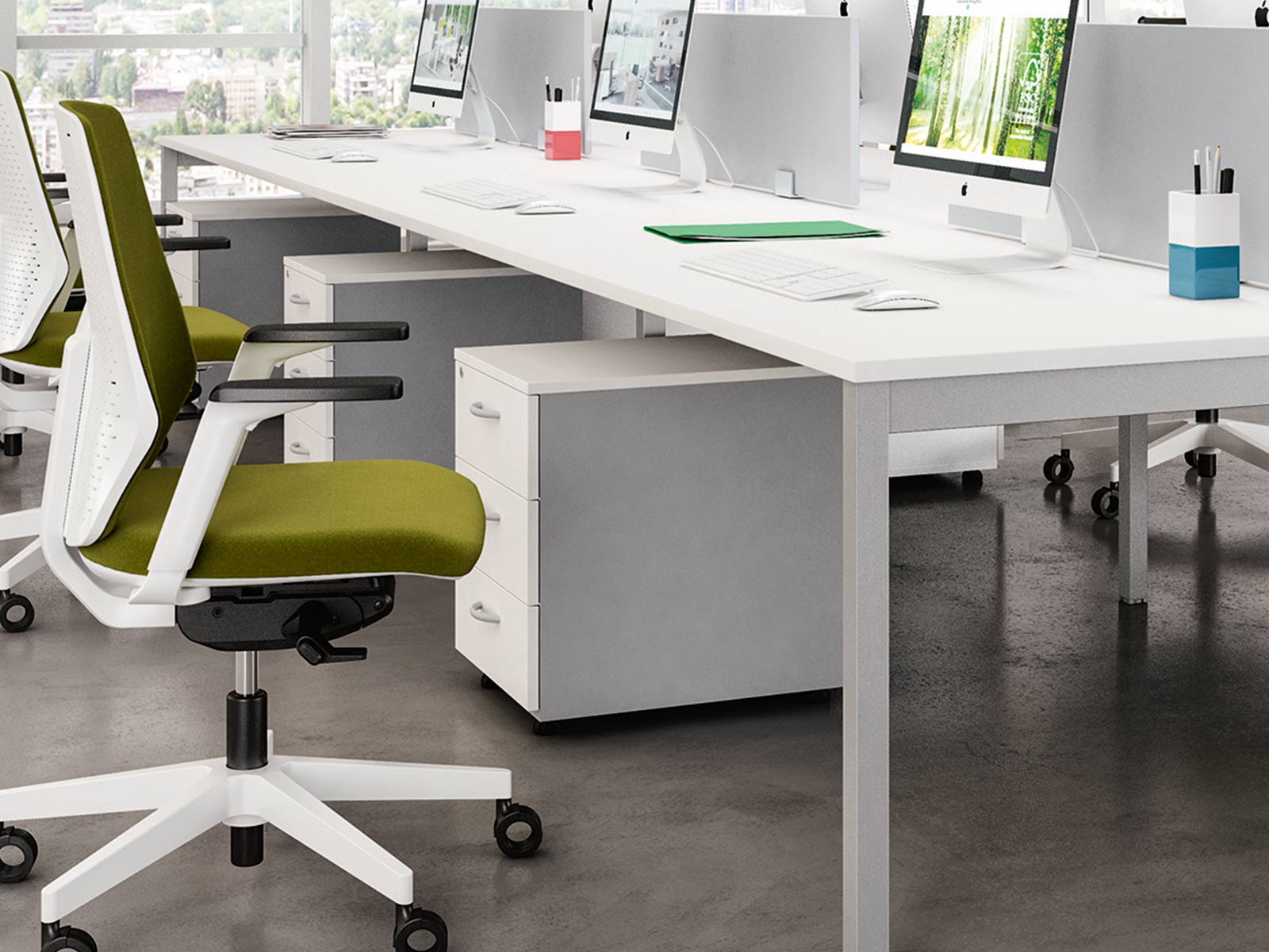 La façade et le top sont disponibles en hêtre, blanc, gris, noyer canaletto et chêne. La structure est au choix en gris alu ou blanc. N'hésitez pas à nous contacter pour tout renseignement et à accorder votre caisson à un bureau de la même marque.