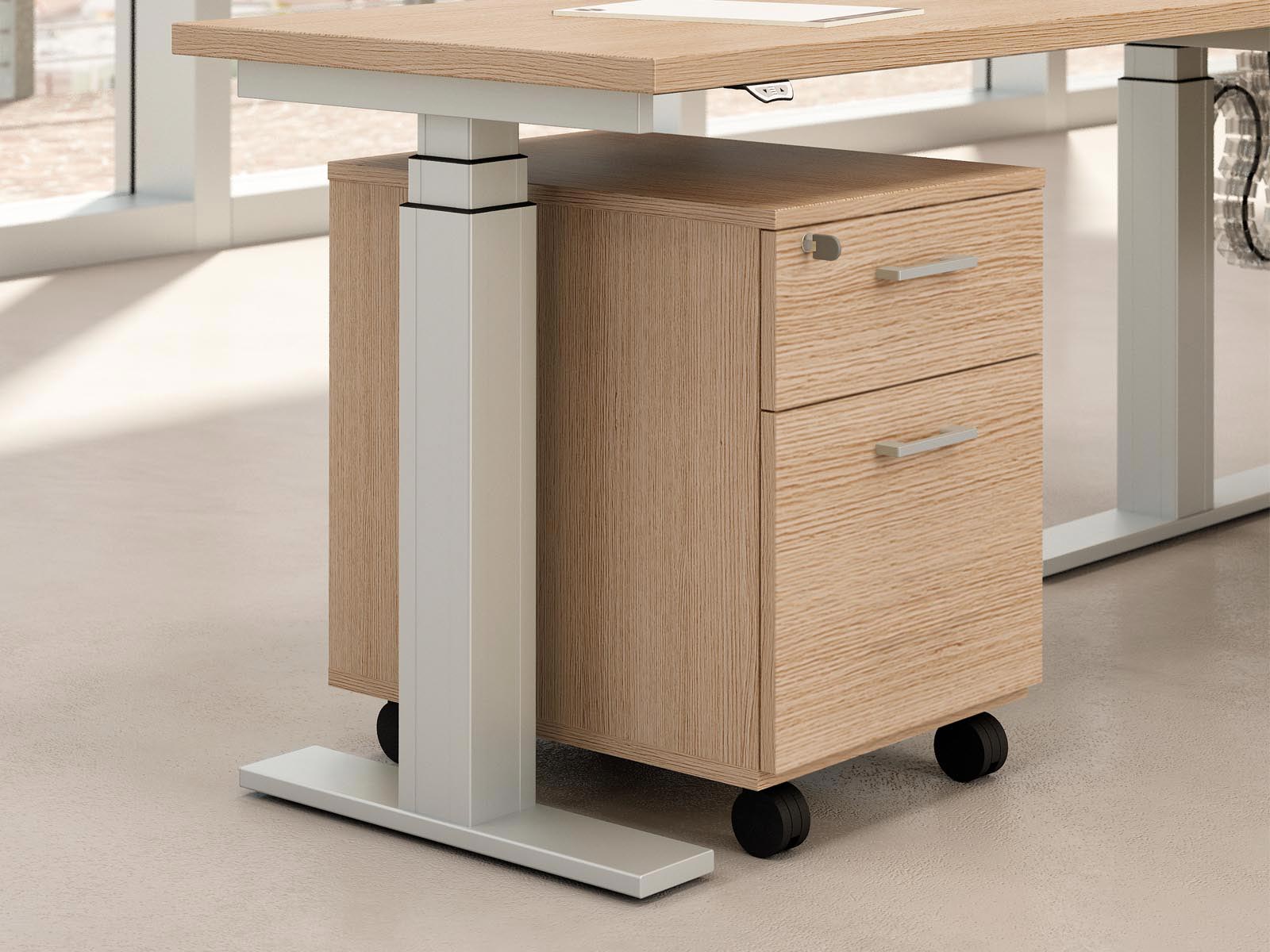Ce caisson en bois mélaminé de 42 cm de large peut être déplacé facilement grâce à ses roulettes pivotantes à 360°. Il est sécurisé grâce à un verrouillage par clé.
