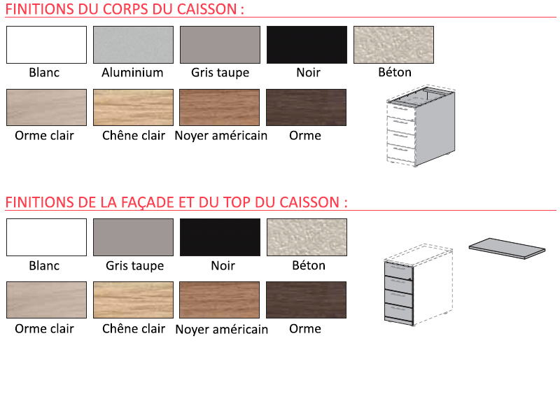Le caisson est en mélaminé d'épaisseur 18 mm.