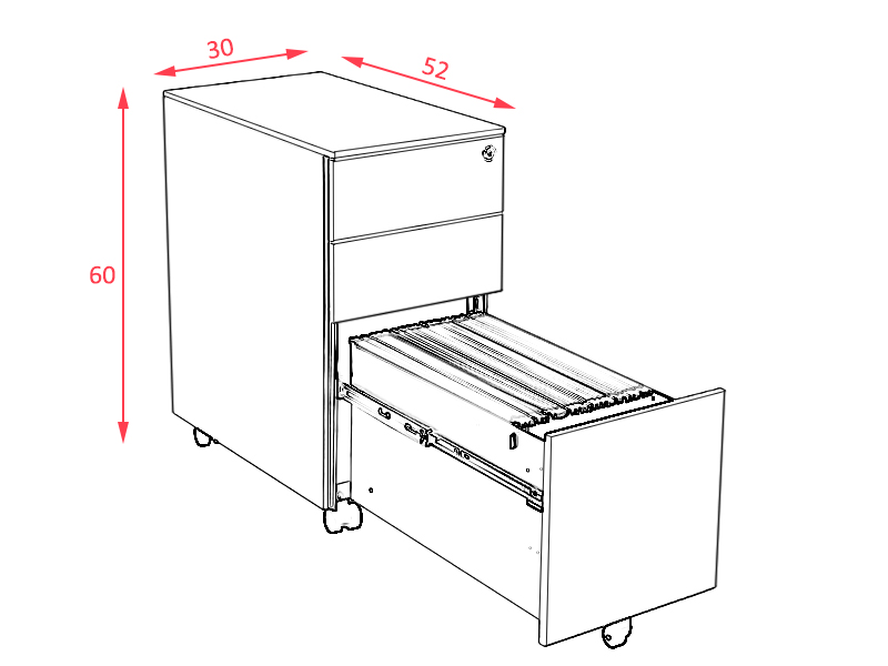 2 tiroirs de rangement et 1 tiroirs pour dossiers suspendus) est l’allié des postes de travail à dimensions réduites. Sa largeur de 30 cm, inférieure à la moyenne, permet une utilisation même avec un bureau ou plan de travail de faible largeur. Ce caisson Slim est de fabrication française, gage de qualité, et a un design sobre et épuré, sans poignée pour minimiser son encombrement. Il est disponible en 8 coloris pour répondre à la plupart des ambiances.