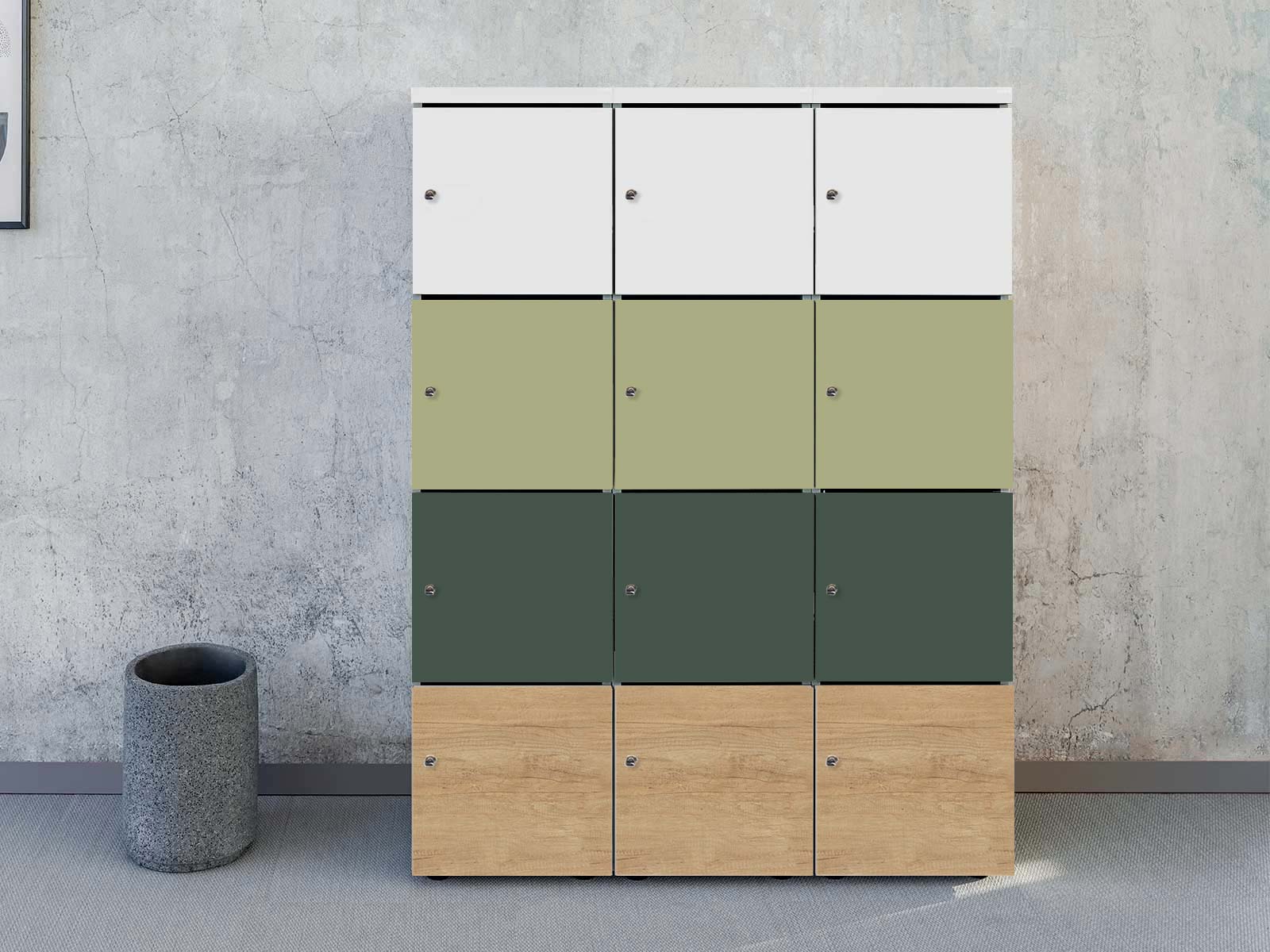 Cet ensemble de 12 casiers de rangement permet à vos visiteurs et collaborateurs de disposer d'un espace de rangement privé et sécurisé. La structure des casiers est en bois mélaminé d'épaisseur 18 mm. Chaque porte dispose d'une fente pour le courrier et autres documents personnels.