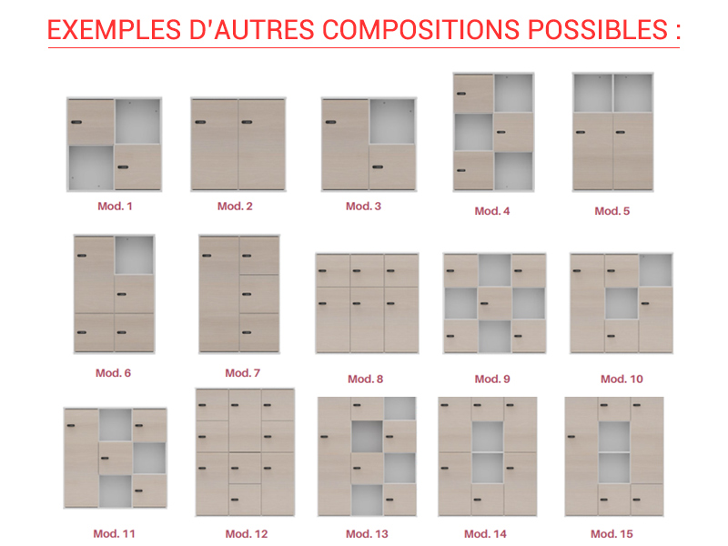 La collection Cubik propose ici des casiers avec différents types de rangements : casiers avec