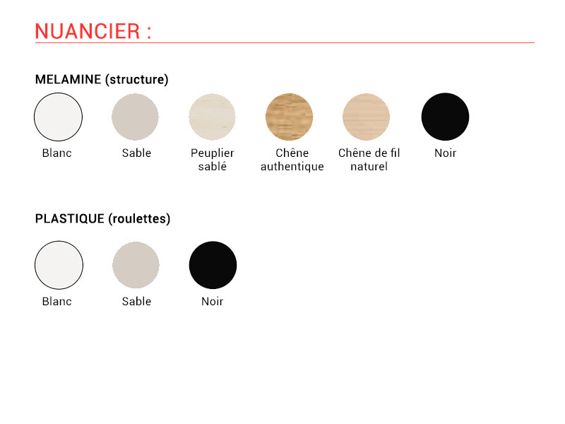 dimensions L 100 x P 45 x H 66,5 cm, elle se glisse facilement sous ou à côté du poste de travail, tout en offrant une belle capacité de rangement. Et pour s’adapter à l’agencement de chaque utilisateur, les