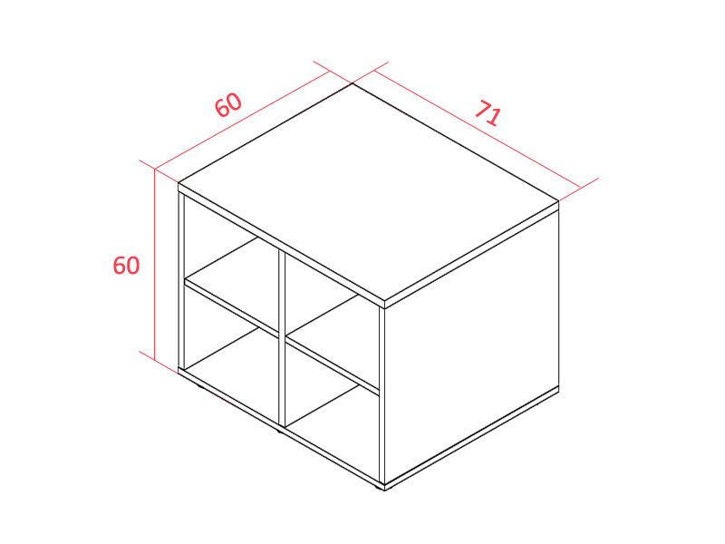 Ce meuble compact servira de support pour les imprimantes de proximité. Ses dimensions (L71 P60 H60 cm) sont spécialement adaptées pour y recevoir des copieurs de petite taille.
