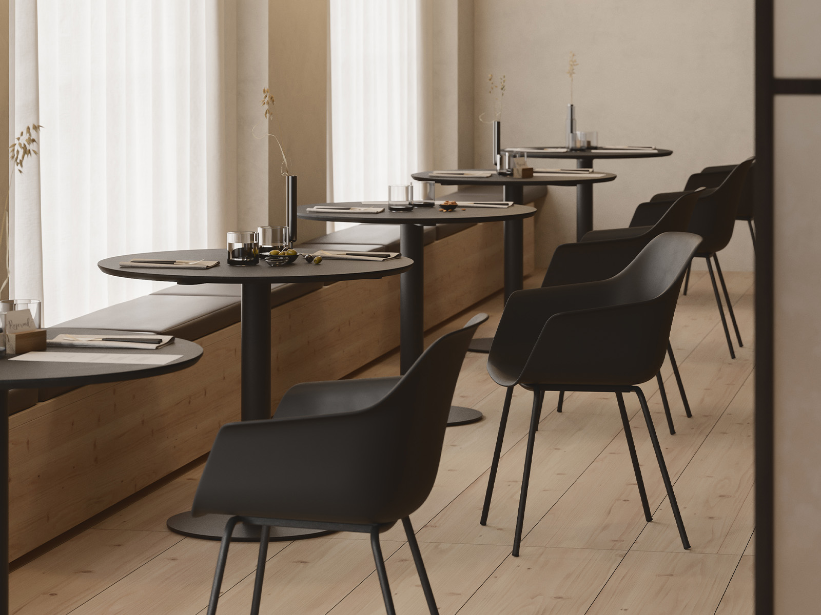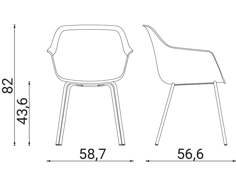 accoudoirs fixes complétant une assise équilibrée tant dans sa largeur (