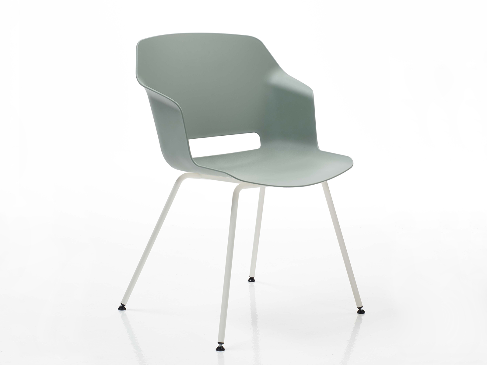 Clop est une chaise polyvalente qui peut se placer dans les zones d'accueil, d'attente, salles de réunion, mais également dans les espaces de restauration. Sa forme galbée et ses petits accoudoirs intégrés la rende confortable et élégante. Elle possède une partie ajourée qui aide à la respiration du dos et à la préhension.