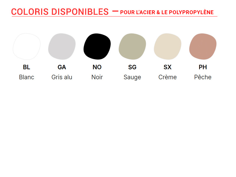 coque enveloppante en polypropylène, est disponible en plusieurs finitions pour s’adapter à tout décor intérieur. Son